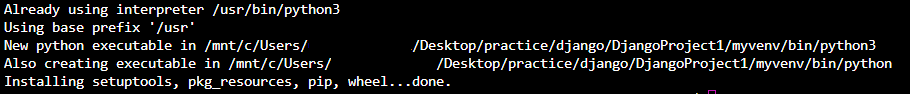 저는 바탕화면 > practice > django > DjangoProject1 폴더를 만들었고, DjangoProject1 의 폴더에서 "myvenv" 가상환경을 만들어보겠습니다.