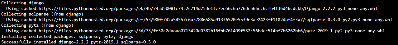 설치가 진행되면, 가장 마지막에 Successfully installed django-x.x.x ......가 나오게됩니다.
