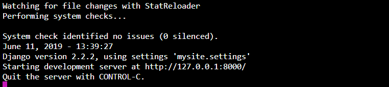 이제, 웹서버를 시작 해 보겠습니다. 마찬가지로 manage.py를 사용해서 서버를 시작하겠습니다.